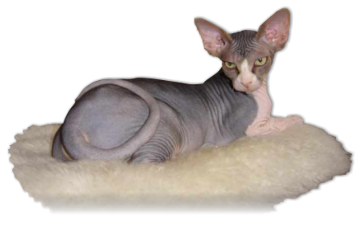 including pointed. The skin is coloured as if tattooed. Most Sphynx do have a very fine down, almost imperceptible to the eye,